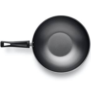 Frigideira Nº 28 Wok Linha Flora Teflon - Grafite-Mta Com todo o seu charme ela irá te proporcionar momentos inesquecíveis com seus familiares e amigos. O exclusivo revestimento SuperFlon de 7 camadas texturizado é muito resistente, pois é formulado à base de fluoropolímeros, reforçado com partículas de cerâmica e estudado para uso intensivo. Este sistema de revestimento em múltiplas camadas é aplicado com tecnologia de transferência por contato. Essa linha tem também um diferencial, que é o desenho estampado no fundo da panela deixando a sua cozinha singular e elegante. - Caracteristicas -dimensões -diâmetro: 28cm -comprimento: 45cm -altura: 10,3cm -largura: 29,5cm -peso: 0,54 kg -capacidade: 4,3 litros -cor: Grafite Espessura do fundo 1,6 mm Cabos em baquelite / Antitérmicos Pomeis em nylon Material: Aluminio - Vantagens: Livre de PFOA 7 camadas de antiaderente SuperFlon ULTRA Utilização: Fogão à gás , fogão eletronico, Vitrocerâmico. Não é compativel com fogão de indução. Atóxico Reciclável Pode ser levado ao Lava-louças Ean: 7897186681016