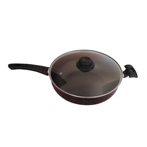 Frigideira Alta Antiaderente preta N°28. Os produtos da linha Alusol são versáteis trazendo para sua cozinha elegância no preparo de refogados, carnes, e afins. Tampa de Vidro Corpo Alumínio Cabo Baquelite Espessura do fundo 2,0 mm Espessura das laterais 2,0 mm Utilização: Fogão Vantagens Cinco camadas de revestimento antiaderente Fácil limpeza Cabos em baquelite antitérmico Estrutura em alumínio Pintura externa Utilização em fogão, não é utilizada em fogão por indução.