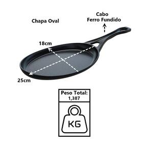 01 Frigideira Oval Cabo Ferro Fundido Servir Porção 25x18cm.