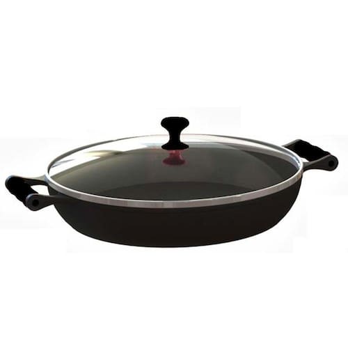 Frigideira Paella com alças de silicone Preto e tampa de vidro 5,6 Litros 36 Cm