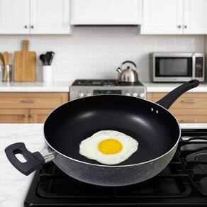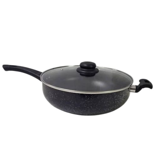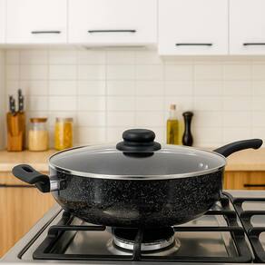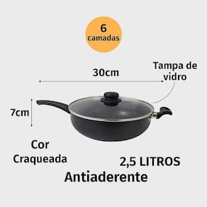 Frigideira Panela Antiaderente Alusol 2,5l 6 camadas Frigideira Antiaderente Craqueada Alusol 30cm com Tampa de Vidro - 6 Camadas de Qualidade e Desempenho Leve praticidade, elegância e eficiência para sua cozinha com a Frigideira Alusol de 30cm. Com design moderno na cor craqueada, esta peça une beleza e funcionalidade para preparar suas receitas favoritas com muito mais facilidade. Com 30cm de diâmetro e 7cm de altura, ela é ideal para frituras, refogados e grelhados em porções maiores, sem abrir mão do controle no preparo. Seu revestimento antiaderente de 6 camadas garante cozimento uniforme, menor uso de óleo e muito mais facilidade na hora da limpeza. Acompanhe o preparo dos alimentos com a tampa de vidro temperado com saída de vapor, que conserva o calor e evita respingos. Destaques do produto: