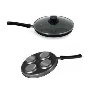 Frigideira Para Ovos 4 Em 1 Com Tampa - Preta