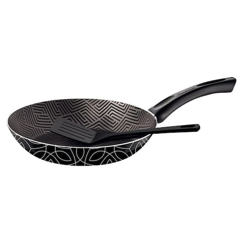 Frigideira Tramontina Paris 28cm 2l Com Antiaderente Starflon Max Preto Decorado Com Espátula Tramontina Frigideira Tramontina Paris 28cm 2L com Antiaderente Starflon Max Preto Decorado com Espátula Tramontina - Com a frigideira Tramontina Paris em alumínio com revestimento interno em antiaderente Starflon Max e externo siliconado preto com espátula 28 centímetros 2,0 litros você tem uma peça de qualidade, que vai deixar suas receitas ainda mais saborosas! Produzida em alumínio com espessura de 2,3 milímetros e revestimento interno de antiaderente Starflon Max, ambas características que proporcionam um cozimento rápido e uniforme dos alimentos, evitam que eles grudem em sua superfície, e devido a isso, também é muito mais fácil de limpar. O cabo em baquelite antitérmico é um material que não aquece e oferece maior segurança e conforto durante o manuseio. É uma frigideira com revestimento externo siliconado e que facilita ainda mais suas tarefas. Mais um produto com a qualidade Tramontina, que você já conhece e confia! Características Gerais do Produto: Garantia: - 90 dias para vícios ou defeitos de fabricação.