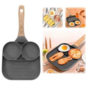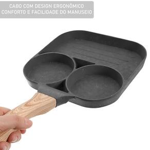 - Linha: Frigideira antiaderente com três divisórias circulares.