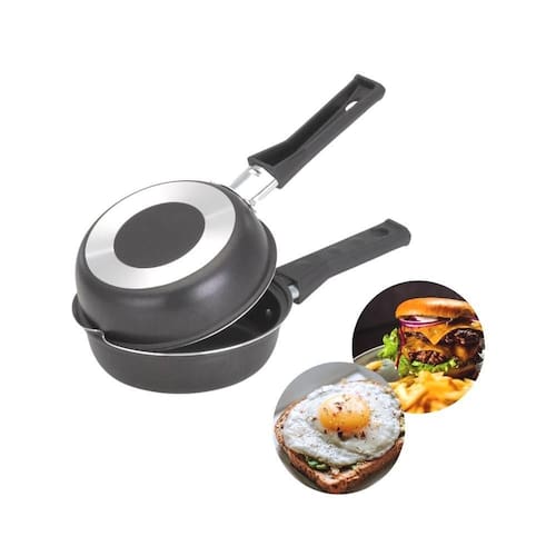 Frigideira dupla antiaderente para preparo de omeletes, hambúrgueres, queijos derretidos, aquecimento de pães e outros alimentos. Possui cabos em baquelite para maior segurança e facilidade de limpeza. Não funciona em fogão de indução.Base antiderrapante