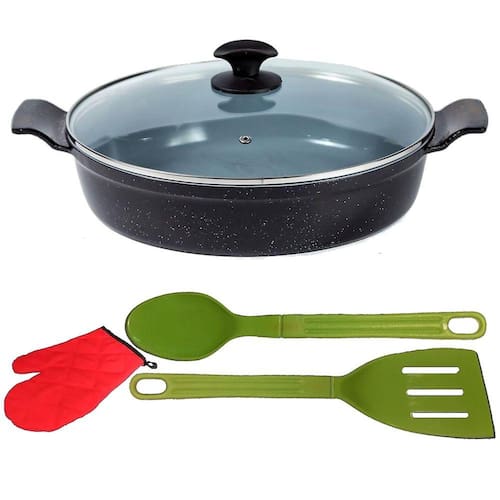 01 Frigideira Preto Liso Antiaderente em Cerâmica Talher e Luva 04 30cm.