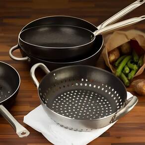 Frigideira Profissional Preta 24 cm 1,9 L em Alumínio com Revestimento Interno Antiaderente Multiflon - Especificações TécnicasDimensões Produto (Compr. X Larg. X Alt.): 46 x 24 x 10 cm.
