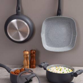 Frigideira Quadrada Hercules Antiaderente 24cm Indução Ceramico Cinza Descrição: Trazendo praticidade, elegância e qualidade, a frigideira Soft Touch Hercules foi pensada para se tornar indispensável na sua cozinha. A linha Soft Touch possui corpo em alumínio com 3 milímetros de espessura, é leve para utilizar e guardar, possui revestimento antiaderente cerâmico capaz de conduzir o calor de maneira uniforme para acelerar o cozimento e sem componentes PTFE e PFOA, que são prejudiciais à saúde e agridem a natureza. Também possui cabos em baquelite com acabamento soft touch que não esquentam enquanto cozinha no fogão, além de poder ir ao forno Seu exclusivo fundo possui uma perfeita distribuição e transferência no calor, cozinhando os alimentos em menos tempo e ajudando na redução dos gastos. A durabilidade e alta resistência à corrosão são devido ao revestimento cerâmico de alta qualidade. Ainda possui fundo especial que possibilita o uso em fogões de indução. Características: - Corpo Em Alumínio De Alta Espessura e Cabo em Baquelite com Soft Touch; - Espessura: 3mm - Revestimento Antiaderente Cerâmico - Fundo Triplo Especial: Distribui O Calor Uniformemente - Diagonal: 31,3 cm Altura: 3,8 cm Capacidade: 2L - Sem componentes PTFE e PFOA - Reduz O Uso De Óleo - Certificado Inmetro Pode ser utilizado em: - Fogão de Indução - Fogão Convencional - Fogão Halogênio - Forno 180C - Lava Louças Especificações: Marca: Hércules; Modelo: Soft Touch PA300-FG23CZ; : 3 meses. ---- Aqui na Casa & Tendência você encontra os melhores utensílios domésticos e tudo que você precisa para sua cozinha ---- Marca: Não Informado
