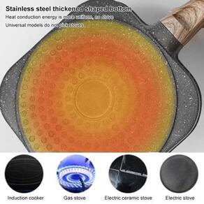 1 grooves 4 ranhuras: o diâmetro do pote de 7.48 polegadas, o diâmetro do sulco circular de 3.54 polegadas, e a profundidade de 0.87 polegadas. 4 ranhuras funcionam ao mesmo tempo, o que pode fazer refeições para várias pessoas ao mesmo tempo. 2 pan bandeja antiaderente: o corpo da panela no queimado e no adere ao fundo da panela. Comparado com os vasos tradicionais de ferro fundido, tem excelente uniformidade de calor, por isso recomendado usar baixa chama ao cozinhar. 3 universal tipo universal: com o ao inoxidável engrossado fundo de coleta de energia, a energia de condução de calor mais uniforme. A parte inferior do pote conduz o calor uniformemente e no adere ao fundo. O punho preto apenas adequado para g s, o punho de madeira. 4 punho preto baquelite: o punho adota o design aerodinâmico, antiderrapante e resistente ao desgaste, o comprimento de 6.69 polegadas, e a alça altamente confortável. Feito de baquelite, o punho durável e parece melhor. Punho preto, simples e resistente à mancha. 5 easy fácil e rápido: cozinhar mais rápido e mais fácil, exigindo apenas alguns passos simples. Espalhe o óleo na parte inferior da panela primeiro, em seguida, coloque a comida na panela para fritar, em seguida, vire a comida com uma espátula e repita a operação para comer.