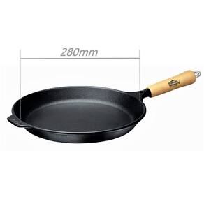 Frigideira Rasa Ferro Fundido sem Revestimento 28CM Cabo Madeira Fixo 1,2L