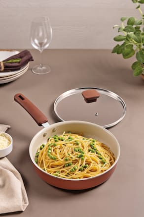 A Frigideira Reta Veronese da Tramontina de 22 cm e 1,7 litro redefine o conceito de praticidade com consciência ambiental. Seu design com laterais retas e maior profundidade a torna a peça mais versátil da cozinha, ideal para grelhar carnes, preparar refogados com molhos ou finalizar pratos que exigem mais espaço, tudo isso com a segurança de uma tampa de vidro temperado inclusa.