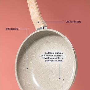 Esta frigideira é produzida em alumínio com revestimento de 2 camadas de Nanoparticulas de Biocerâmica, proporcionando um cozimento rápido e uniforme do seu alimento, além de ser super fácil e rápido de lavar.