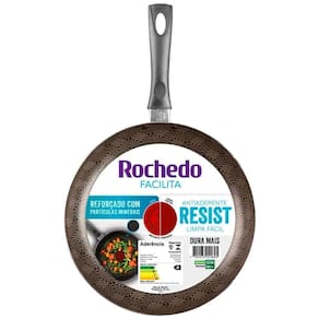 A Frigideira Wok Rochedo Facilita, com capacidade para 1,5 litros, ? ideal para quem busca durabilidade, resist?ncia e qualidade na cozinha. Destaca-se por seu revestimento antiaderente Resist 3X, uma tecnologia inovadora que garante maior robustez e performance. O revestimento ? refor?ado com part?culas minerais, proporcionando uma camada mais resistente e prolongando a vida ?til da panela, ideal para quem deseja um produto que dure por anos.