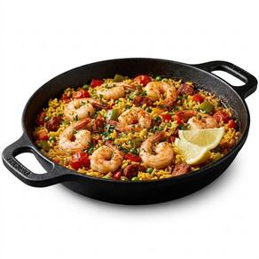 Fabricada em ferro fundido, oferece ótima distribuição de calor, contribuindo para um cozimento uniforme dos alimentos e realçando sabores e texturas das receitas.