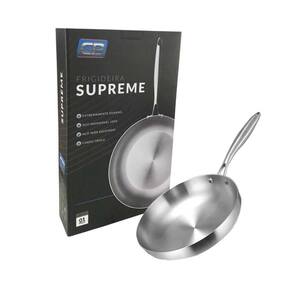 Frigideira Supreme Aço Inox N 28 Fundo Triplo 2,7 Litros Gp696 - Gp Inox DESCRIÇÃO DO PRODUTO: - Material: Aço inox de alta qualidade ? resistente, durável e fácil de limpar; - Funciona em todos os tipos de fogão, incluindo indução, graças ao fundo triplo magnético; - Cabo em aço inox rebitado e anatômico; - Possui fundo triplo (aço inox + alumínio + aço inox), tecnologia que distribui melhor o calor, cozinhando os alimentos mais rapidamente e com menos gasto de energia.