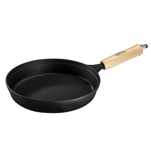 Frigideira Tradição 22 cm 1,2 L em Ferro Fundido e Cabo de Madeira Panela Mineira - Especificações TécnicasDimensões Produto (Compr. X Larg. X Alt.): 22 x 22 x 4,5 cm.