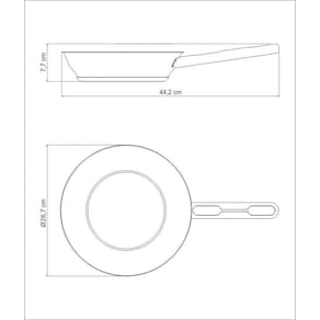 Sempre deixe a frigideira esfriar antes de mergulhar na água. Características GeraisEAN137891116108277DUN1417891116108274NCM7323.93.00Peso Líquido0,8020 kg.Peso Bruto0,9060 kg.Metragem0,009330 m.Dimensões Embalagem (Compr. X Larg. X Alt.)443x 270x 78 mm.Dimensões Produto (Compr. X Larg. X Alt.)442x 267x 77 mm.Diâmetro24,0 cm.Capacidade2,10 l.Espessura0,5 mm.