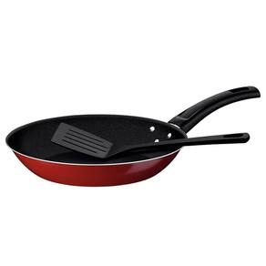 DESCRIÇÃO DA FRIGIDEIRA TRAMONTINA EM ALUMÍNIO VERMELHO COM ANTIADERENTE + ESPÁTULA