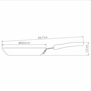 - Dimensões do Produto (Compr. X Larg. X Alt.): 447x246x72 mm. Tipo de produto: Frigideira | Capacidade em volume: 1,3 L | Unidades por embalagem: 1 | Material do corpo: Alúminio | Material do cabo: Aço inox e baquelite | Comprimento: 44,7 cm | Largura: 24,6 cm | Altura: 7,2 cm | Diâmetro: 24 cm | Com material antiaderente: Sim | Com superfície canelada: Não | Tipo de panela de cozinha: Frigideira | Peso: 1.3 kg | Linha: | Forma: Redonda | Quantidade de peças: 1 | cor: prata, inox | Com Superfície antiaderente: Não | É Apto para lava-louças: Sim | Inclui Tampa: Não | Inclui Espátula: Não | EmbalagemComprimento-cm: 58 | Marca: Tramontina | EmbalagemAltura-cm: 10 | Dias Fornecedor: 0 | Modelo: Alumínio 24 cm 1,3 L | EmbalagemLargura-cm: 39 | Cubagem: 0.022620 | Peso Líquido: 0.0000