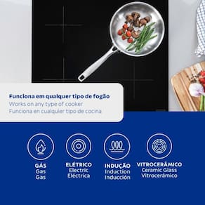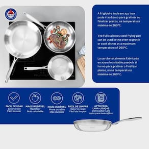 Praticidade é a palavra-chave da frigideira Grano. Além de ser produzida com corpo triplo, que garante um cozimento mais rápido dos alimentos, seu desenho sem cantos torna sua limpeza muito mais fácil. A Frigideira Tramontina Grano em Aço Inox Corpo Triplo com Cabo 20 cm 1,2 L tem design moderno e acabamento em alto brilho que permite ser levada à mesa. Pode ser lavada diariamente na máquina de lavar louças. Pode ser utilizada nos fogões: gás, elétrico, vitrocerâmico e indução.