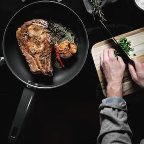 - A frigideira Grano tem design moderno e acabamento em alto brilho que permite ser levada à mesa.
