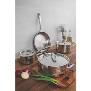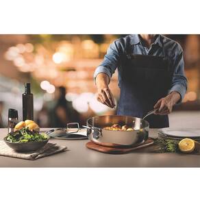 - Economiza tempo e energia: o segredo está no corpo triplo (aço inox + alumínio + aço inox), que distribui o calor uniformemente, proporcionando um cozimento mais rápido. Por isso, você pode manter o fogo baixo durante todo o preparo e, assim, poupar energia. Além disso, a frigideira toda em aço inox pode ir ao forno para gratinar ou finalizar pratos, na temperatura máxima de 260C.