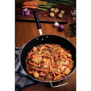 A escolha ideal para quem deseja uma cozinha prática e de alto desempenho, é a frigideira Tramontina Profissional em alumínio com revestimento interno antiaderente Starflon Premium e acabamento externo lixado 38 centímetros de diâmetro 7,1 litros. Ideal para o preparo das receitas mais variadas, ela tem sua produção em alumínio com revestimento interno antiaderente Starflon Premium, características que garantem agilidade no preparo e sem grudar na superfície. Seu cabo é em aço inox com baquelite antitérmico e garante um manuseio mais confortável, pois é resistente a alta temperaturas. Uma frigideira para facilitar suas tarefas na cozinha!