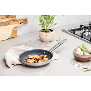 A Frigideira Rasa Tramontina Professional em Aço Inox com Fundo Triplo e Revestimento Interno Cerâmico Grafite de 20 cm e 1,1 L é a escolha ideal para cozinheiros profissionais e amantes da gastronomia. Com seu revestimento cerâmico moderno, ela permite cozinhar com menos gordura, tornando as receitas mais saudáveis. A tecnologia de fundo triplo (aço inox + alumínio + aço inox) proporciona aquecimento rápido e mantém a temperatura por mais tempo, garantindo um cozimento uniforme e eficiente. Uma peça de qualidade excepcional, que une funcionalidade e design para elevar sua cozinha.