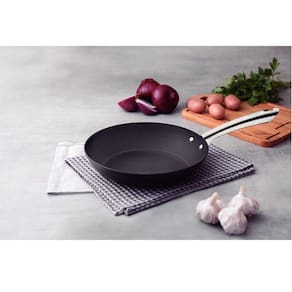 Frigideira Tramontina Trento em ferro esmaltado Descrição :Para garantir aquela refeição gostosa e cheia de sabor, a frigideira Tramontina Trento em ferro esmaltado com revestimento interno em antiaderente Starflon Excellent 30 centímeros 3 litros é indispensável. Desenvolvida em ferro fundido esmaltado revestido internamente com antiaderente Starflon Premium, ela cozinha os alimentos de maneira uniforme e rápida e evita que eles grudem em sua superfície. Uma frigideira que une o melhor dos dois mundos na cozinha: o ferro e o antiaderente, que pode ser utiliza em todos os tipos de fogão e vai deixar sua comida muito mais saborosa! Orientações: A capacidade volumétrica máxima para cozimento é de 3/4 da capacidade total da peça. Posicione os cabos dos utensílios voltados ao centro do fogão.Em fogões com grade, centralize a peça e alinhe o cabo com a grade.Quando utilizar em fogões de base lisa, levante a peça para movimentá-la, evitando riscos em seu fogão.Utensílios quentes devem estar fora do alcance de crianças. Este produto não pode sofrer modificações.Antes do primeiro uso, lave manualmente com esponja macia, sabão ou detergente neutro.Seque com pano macio.Depois de secar, unte a área interna com óleo ou gordura e leve ao fogo por um ou dois minutos.Deixe esfriar e lave novamente.Seu utensílio está pronto para uso com ou sem gordura, sempre em fogo baixo ou médio (nunca superior a 260ºC).Seque totalmente as peças com pano macio e guarde-as sempre em locais secos e arejados, longe de vapor ou qualquer umidade.Para mexer os alimentos use somente utensílios de silicone, nylon ou madeira.O ferro esmaltado é extremamente resistente, mas pode ser danificado se cair ou bater contra uma superfície dura, portanto evite quedas e impactos, que podem provocar o desprendimento do esmalte.Se isto ocorrer, poderá haver a formação de ferrugem na área afetada, não alterando o desempenho do utensílio.Para proteger a área danificada, unte com óleo alimentício embebido em papel toalha.Limpeza: Evite choque térmico: não mergulhe o utensílio quente em água fria.Nunca utilize produtos abrasivos na lavagem.Se deixar queimar alimentos, umedeça a área com água e limpe com esponja e sabão neutro.Após a limpeza, aplique uma fina camada de óleo alimentício na borda da peça.Para descarte dos produtos e embalagens siga as orientações de reciclagem vigentes. Descrição técnica: Ferro fundido esmaltado com espessura de 2,5 mm que distribuir o calor de maneira rápida e uniforme.Revestimento interno de antiaderente Starflon Excellent que não gruda, é fácil de limpar, mais durável e não é prejudicial à saúde, pois é livre de PFOA.Cabo de aço inox.Pode ser levada ao forno, facilitando a finalização das receitas. Descrição específica:EAN13: 7891112265059DUN14: 17891112265056NCM: 7323.92.00Peso Líquido: 1,7800 kg.Peso Bruto: 2,0100 kg.Metragem: 0,011135 m³.Dimensões Embalagem (Compr. X Larg. X Alt.): 505x 315x 70 mm.Dimensões Produto (Compr. X Larg. X Alt.): 512x 307x 75 mm.Diâmetro: 30,0 cm.Capacidade: 3,00 l.Espessura: 2,5 mm.Cor 1: 000000 Hexa
