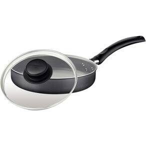 Frigideira Turim Reta Cinza em Alumínio com Revestimento Antiaderente 22CM 1,7L Tampa de Vidro Temperado