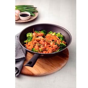 Complete sua cozinha com a Wok Tramontina Loreto em alumínio com revestimento interno e externo antiaderente Starflon Max grafite 28 centímetros de diâmetro 3,6 litros e garanta qualidade e praticidade na hora de preparar suas principais refeições!