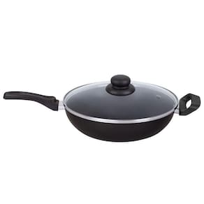 01 Wok Preta 26cm com tampa de vidro