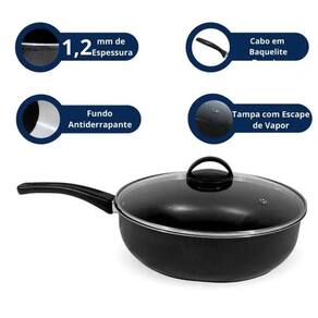 Com uma capacidade de 3200 ml, esta frigideira é perfeita para preparar porções generosas de suas receitas favoritas, desde stir-fries até paellas. O cabo em baquelite proporciona um manuseio seguro e confortável, enquanto a superfície canelada adiciona um toque de sofisticação ao design.