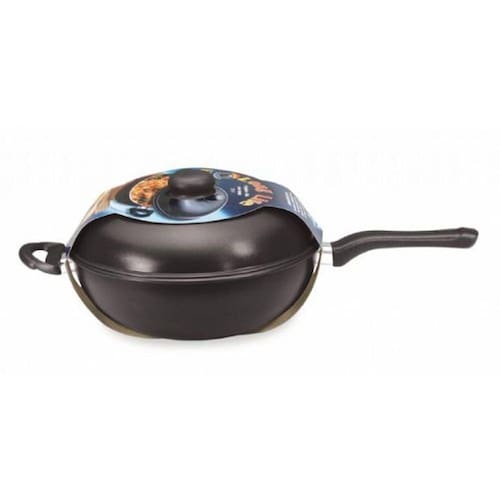 Frigideira Wok confeccionada em alumínio super reforçado, fabricada pela Indústria de Alumínios Eirilar.
