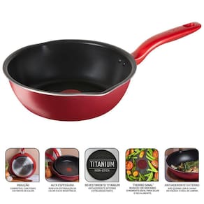 Frigideira Wok Com Indução Tefal So Chef 28cm Vermelha