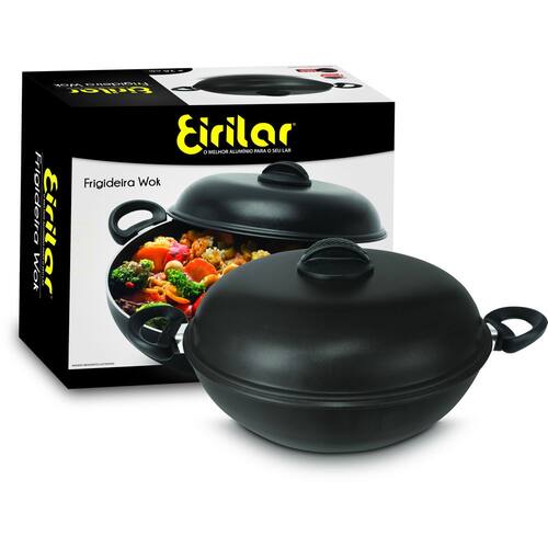 Produto Com 3 Mm De Espessura De Alumínio, Frigideira Wok Long Life Antiaderente Eiriflon Com Tampa 36 É Ideal Para Ser Servida À Mesa, Mantendo Seu Alimento Mais Aquecido Por Mais Tempo, Com Charme E Elegancia.