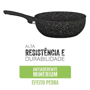 Linha Rochedo Stone Pro, alta resistência e durabilidade para resultados perfeitos com o revestimento exclusivo Minerium, possui efeito pedra que proporciona um design moderno para a sua cozinha. A Frigideira Wok Rochedo Stone Pro 25cm é incomparável quando o assunto é durabilidade e alta resistência. Conheça todos os diferenciais dessa linha: