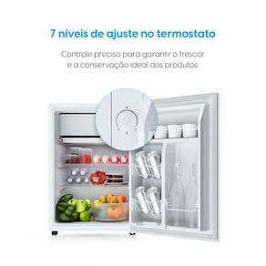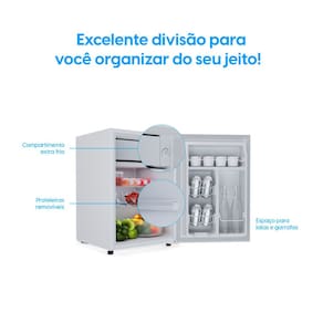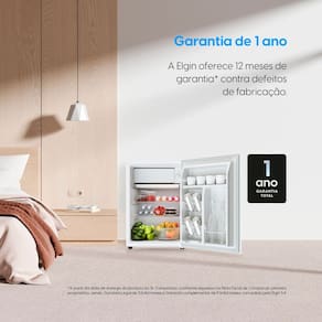 Frigobar 47 Litros Elgin Porta Reversível Compartimento Extra Frio BAFN047D1NA Branco 127v. Compacto e potente, ideal para quartos, escritórios, áreas de lazer, pousadas e pequenos comércios. Porta reversível para adaptação ao espaço. Compartimento Extra Frio para resfriamento rápido ou conservação de laticínios. Baixo consumo de energia, econômico e silencioso. Design inteligente com prateleiras internas bem distribuídas e compartimento para garrafas grandes. Controle de Temperatura Ajustável com 7 níveis. Prateleira removível para flexibilidade na organização. Pés Niveladores para estabilidade. Compartimentos otimizados para latas, garrafas e itens diversos. Alta Eficiência com Classificação A no Inmetro. Fluído Refrigerante Ecológico R600a.Vendido e entregue por ClimaRio