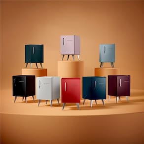Frigobar com design retrô, 76 litros de capacidade, compartimentos modulares, cesto cromado, freezer com capacidade de 8 litros, porta-latas e separador de garrafas. Tecnologia Defrost.Vendido e entregue por WebContinental