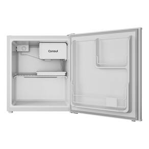 Resumo das especificacoes: - Produto: Frigobar - Marca: Consul - Modelo: CRC04ABBNA - Tipo de Geladeira: Simples - Tipo de Degelo: Cycle Defrost - Quantidade de Portas: 1 - Dispenser de Agua: Sim - Dispenser de Gelo: Sim - Porta Latas: Sim - Capacidade: 47 L - Cor: Branco - Tensao Eletrica: 220V - Dimensao: 45,5x46x53,1 cm - Material: Metal - Acompanha Pes: Sim (4 pes de aco) - Acompanha Prateleiras: Sim (1 prateleira de metal) - Nivel de Eficiencia: A - Consumo de Energia: 12,40 kWh/mes - Garantia do Fabricante: 15 meses - Numero de Registro: 6081/2024."