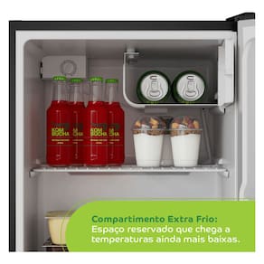 Ideal para ser utilizado em escritorios, quartos ou salas de estar, o Frigobar Consul CRC04AEBNA e uma excelente opcao para manter suas bebidas e alimentos sempre frescos e a mao. Possui nivel de eficiencia energetica A, consumindo apenas 12,40 kWh/mes, o que representa economia na conta de luz. O produto tem garantia do fabricante de 15 meses, assegurando sua tranquilidade e confianca na compra.