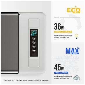 Warranty for your rightsWith CE and FCC certificated, we guarantee you a 2 year warranty for the compressor and all other accessories . If you have any questions, please reach out to BougeRV, we provide 24h friendly customer service. Package included removable partition,dc power cord, ac power cord and user manual Fast Coolingtime and money savingWith Compressor refrigeration technology, this 12 v car freezer could achieve 16 min fast cooling from 77 to 32 and 50 min from 77 to 5, keeping your food fresh. No ice needed, no food spoided, money and space saving. Demension22.6812.6015.5in, Weight 22.8lb lightweight ECO mode energy efficencyWith ECO energy saving mode, this 30 Quart car fridges operating power is less than 45W. Even running on MAX mode, it comsumes far less than 1kwh, day for its intelligent cycle work. You can run this car fridge with 12, 24 V DC power on various vehicles, such as SUV, Truck, RV, Camper, Jeep, Van, Boat, etc. Low Noise quiet sleepThe truck freezer is designed 45dB low noise to make sure you a good sleep after a long driving. This camping fridge also has a shock proof design to face the uneven road, operating with no problem in case of a 30 inclination when your are off road. 3 Level Voltage protect your carThe RV fridge, freezer is equipped with a 3 level battery monitor to prevent the fridge from draining your vehicles battery. You can choose at what battery voltage the fridge shuts off to prevent complete battery drain.