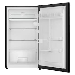 Frigobar com 90 litros de capacidade, 1 porta, degelo manual, porta reversível, controle de temperatura ajustável entre -2°C e 10°C, iluminação interna, tecnologia Cold Zone, compartimento extra frio, prateleiras de vidro, gaveta, espaço para garrafas e bandeja para ovos.Características