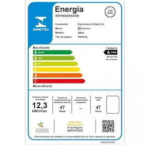 Características: Capacidade de 47L Temperatura ajustável Compartimento extra frio Prateleiras removíveis Porta Reversível Gás ecológico R600a