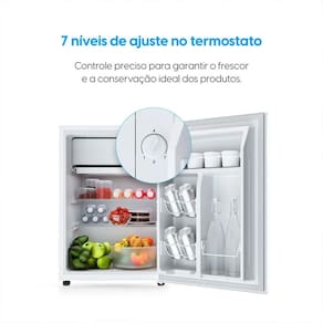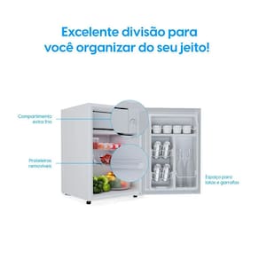 Frigobar com porta reversível, compartimento extra frio e compartimento para latas.Vendido e entregue por Bendicasa Moveis e Eletro
