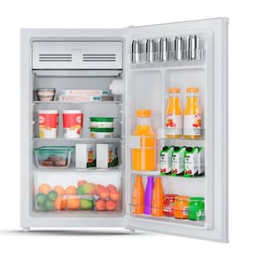 Frigobar 1 porta com 90 litros de capacidade, degelo manual, controle de temperatura manual, 5 prateleiras, puxador embutido, iluminação interna, prateleiras removíveis, compartimento extra-frio, porta-latas, porta-ovos, gás refrigerante R600A, classificação energética A+++, certificação Inmetro 008741/2023.Características
