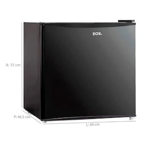 Características: Marca: EOS Modelo: EFB50 Capacidade total: 47 litros Tipo de degelo: Manual Prateleiras: Sim Gavetas: Não Espaço para garrafas: Sim Pés niveladores: Sim Cesto: Não Controle de temperatura: Sim Porta reversível: Não Compartimento gela rápido: Sim Iluminação interna: Não Pés com rodízios: Não Bandeja de gelo: Não Eficiência energética: A Inmetro: Sim