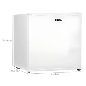 Características: Marca: EOS Modelo: EFB50 Capacidade total: 47 litros Tipo de degelo: Manual Prateleiras: Sim Gavetas: Não Espaço para garrafas: Sim Pés niveladores: Sim Cesto: Não Controle de temperatura: Sim Porta reversível: Não Compartimento gela rápido: Sim Iluminação interna: Não Pés com rodízios: Não Bandeja de gelo: Não Eficiência energética: A Inmetro: Sim