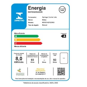 Frigobar com tecnologia Inverter, 93L de capacidade, 1 porta, 3 prateleiras de vidro, 1 gaveta, compartimentos para garrafas, porta latas, porta reversível, gás ecológico R600a, controle de temperatura, compartimento extra frio, pés niveladores.Vendido e entregue por É BOM DE COMPRAR