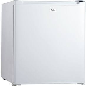 Frigobar Philco com capacidade de 47 litros, sistema de refrigeração por compressor, controle de temperatura ajustável, porta reversível, pés ajustáveis e prateleira em aço.Características